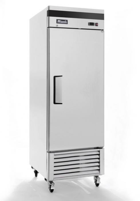 The Dukers D28F reach-in commercial freezer is designed to suit the needs of any business who needs optimal performance without sacrificing design. A single door is accented with high-quality brushed stainless steel for both the interior and exterior to fit a variety of decors. Recessed door handles allow for clean styling and better ergonomics. The heavy-duty 1/2 HP compressor is bottom mounted for excellent efficiency and better cooling. Digital controls fine-tune the desired interior temperature. Self-closing doors free up your hands for added convenience and ease of use. Auto-defrosting provides lower energy costs and colder temperatures. Four shelves can be adjusted or removed for flexibility and maintenance. Easily move and position with four swivel casters.